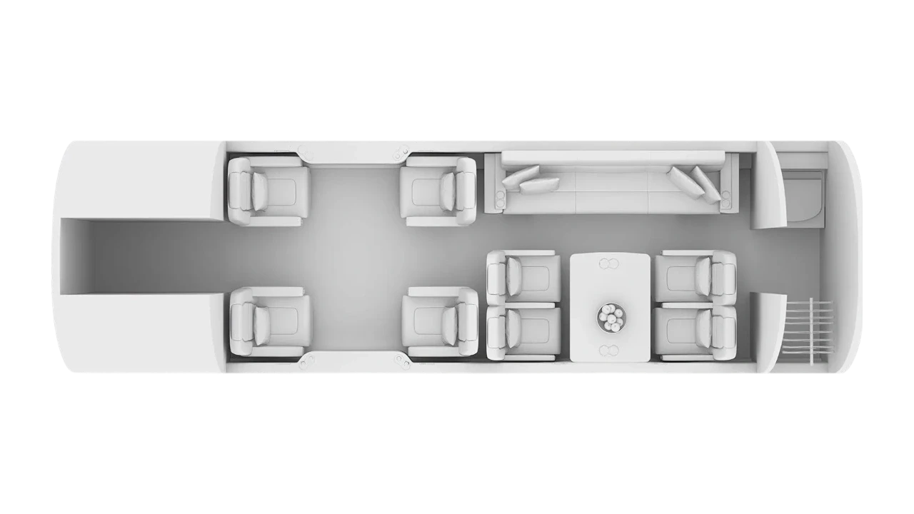 The Gulfstream 200 is a super mid‑size jet known for its spacious stand‑up cabin and strong performance profile. With one of the tallest and widest cabins in its class, it provides generous headroom, aisle space, and seating comfort for up to ten passengers. A fully heated and pressurized baggage compartment and a well‑equipped galley support longer missions. For travelers seeking long‑range capability with true Gulfstream comfort, the G200 is an attractive option.